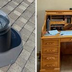 At some point, either the original installation or a later modification, the curb had been expanded with additional lumber with part of the flashing between the boards. Not good! It was necessary to cut the old flashing away to ensure a proper seal with the new flashing kits.